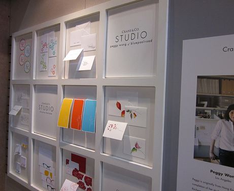 I have to lead off my stationery show coverage with a personal favorite: Peggy Wong of bluepoolroad’s collection for Crane & Co Studio. It was thrilling to finally see Peggy’s collection of brightly colored coasters and modern thank you cards and notecards on display: they looked great + were true to the bluepoolroad design aesthetic that I love. Through the wonders of the internet, Peggy and I have become friends and I’m so excited + happy for her!
