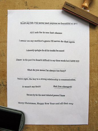 I would use the “You are by far the most talented person I know” stamp, designed by Dominic Wilcox, so much as to render it meaningless. (And making it decidedly dishonest: perhaps I should purchase the “I sincerely apologize for all the trouble I’ve caused.” Stands up to multiple uses.)