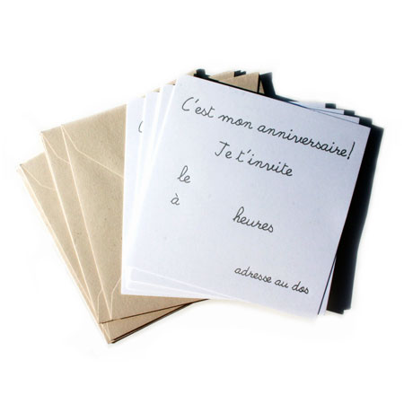 Love this simple invitation from Basic French. (I’m envisioning it for an 8-year-old girl’s birthday/tea party for some reason.) Full of charm.