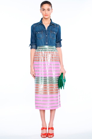 look 14: great mix of denim shirt and glam stripey skirt