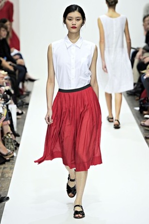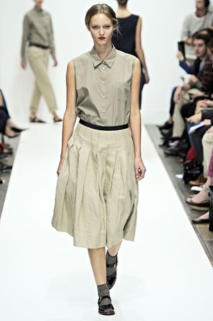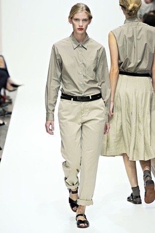 Margaret Howell’s spring collection had a decidedly nautical bent, which doesn’t work for me as I feel like I’m wearing a costume. Not to worry, though: there were enough classic Margaret Howell looks to ensure I’ll be eagerly anticipating spring’s arrival. I’m especially taken with her deftly paired khaki ensembles: I think it’s the smidgen of black that makes it work. See the full collection at VogueUK. (And good news: looks like La Garçonne will soon be carrying the line. Hooray for us Yanks.)