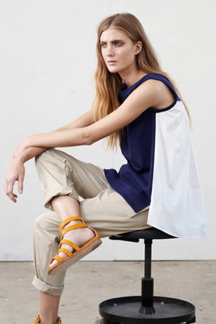 From the khakis, to the flowy top, to the fabulous orange gladiator sandals! …. loving this look from Thakoon Addition. See the complete collection at Style.com.