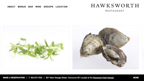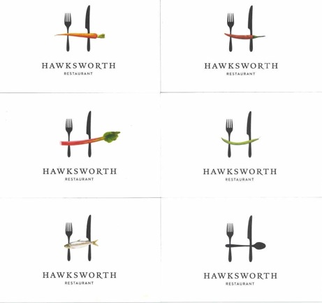 Vancouver restaurant Hawksworth opened in June 2011 on the street level of the Rosewood Hotel Georgia. We stayed at the Hotel Georgia during our August vacation and were able to have lunch at chef David Hawksworth’s newest venture. (Had heard many good things about it and so was so happy to literally stumble across it as we explored the new hotel.) The food was great: my buddy and I will vouch for their excellent burgers, and I was equally wowed with the restaurant’s graphic design. Created by Lightroom, Hawksworth’s stationery and business cards are clean, and yet playfully denote food + dining. Elegant yet approachable. Perfect.