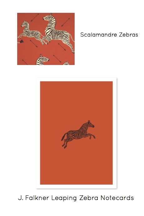 I’ve been obsessed with Scalamandre’s Zebra print forever, so I was thrilled to find J. Falkner’s Leaping Zebra notecard set. The cards come with vellum envelopes which allow the zebra to shine. Perfect.