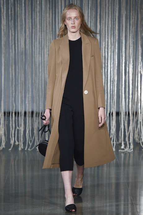 If you ever needed to see proof of the power of a good coat, may I present look 12: Barbara Casasola’s version (in timeless camel) elevates what appears to be yoga pants and a black sweater to über luxe status. Also great are Casasola’s chunky sweaters paired simple skirts. (I’d love to see more of the tie detail on the back of the skirt in look 33.) See the complete collection at VogueRunway.com.