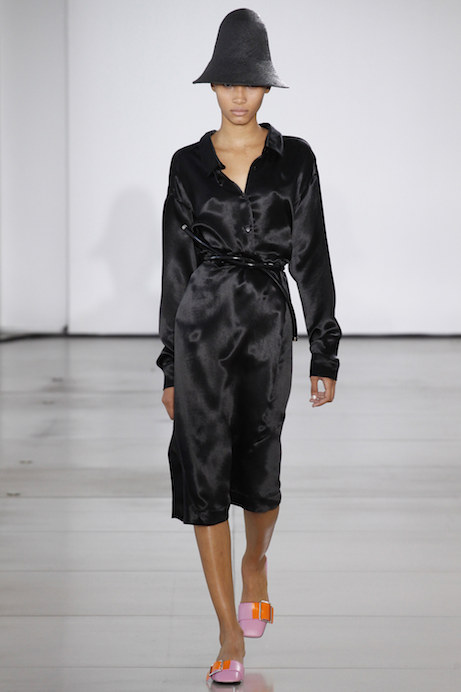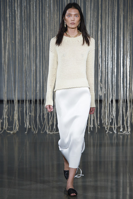 I must admit, I am all about shoes at the moment — and am particularly obsessed with slides. And so Jil Sander’s show won me over with its parade of square-toe, practical mules—flats, of course—paired with soft, minimalist silhouettes. A bit of the romance, missing since Raf Simons’ departure, is back. See the complete collection at VogueRunway.com.