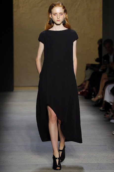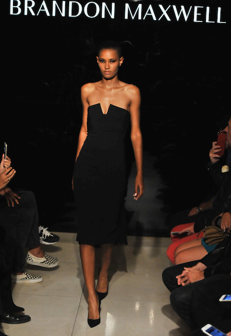 A parade of little black dresses at Brandon Maxwell in über chic silhouettes. See the complete collection at VogueRunway.com.